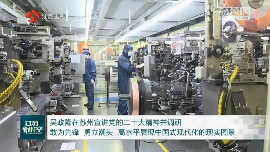 2日下午,江苏省委书记吴政隆来到蔚蓝锂芯股份有限公司,先后视察了公司展厅、电芯制造车间和重点实验室。在蔚蓝锂芯公司澳门新葡京注册送彩金研究院,蔚蓝锂芯董事长陈锴为吴政隆书记介绍了公司运营、科技研发、产品应用、工艺原理等情况。